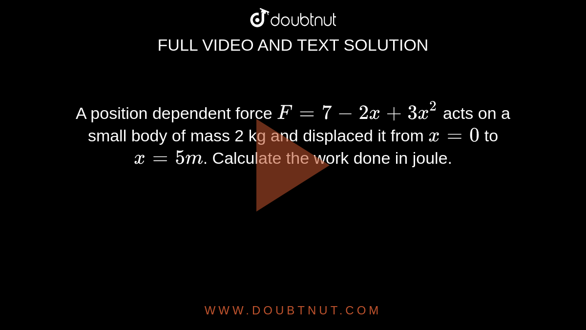 A Position Dependent Force F 7 2x 3x 2 Acts On A Small Body Of Mass 2 Kg And Displaced It From X 0 To X 5m Calculate The Work Done In Joule